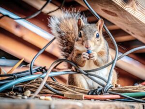 Inspect electrical wiring: Squirrels chew on electrical wires in attics, garages, sheds, or outdoor wiring. Signs: exposed copper, bite marks, flickering lights, tripped breakers. Risk: fire hazard.